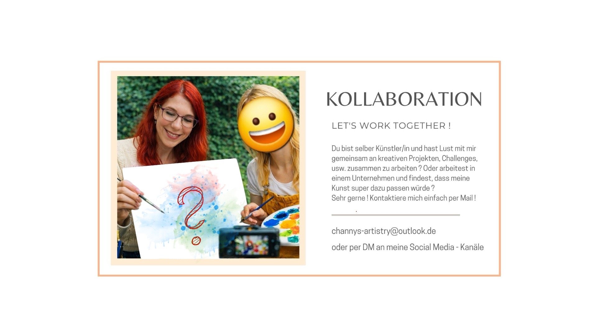 Auf meinen Social Media-Kanälen könnt ihr den Entstehungsprozess von den meisten meiner Werke direkt mitverfolgen und findet verschiedene kreative und vielleicht auch inspirierende Videos von entspannten Skizzenbuchmalereien mit kleinen Stories dazu, Speed Drawings in verschiedenen Techniken von Bleistift bis Aquarell, Abstrakte Kunst wie z.B. Acrylic Pouring, Tonskulpturen & andere "Bastelprojekte" und Tutorials & Tests von verschiedenen Artsupplies.